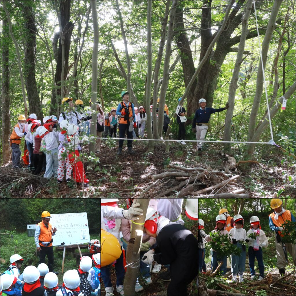 先週に引き続き、清和台南小学校の体験学習を実施しました。主なメニューは先週と同じで、常緑樹(ソヨゴ)の伐倒です。児童数は30人ですが、今回も子ども達の元気の良さに圧倒されました。ケガなく終えることができてよかったです。(右下の写真は、すぐ横にある大きなコナラの幹の太さを体感しているところ。メジャーで計測すると、3.5mもありました。)