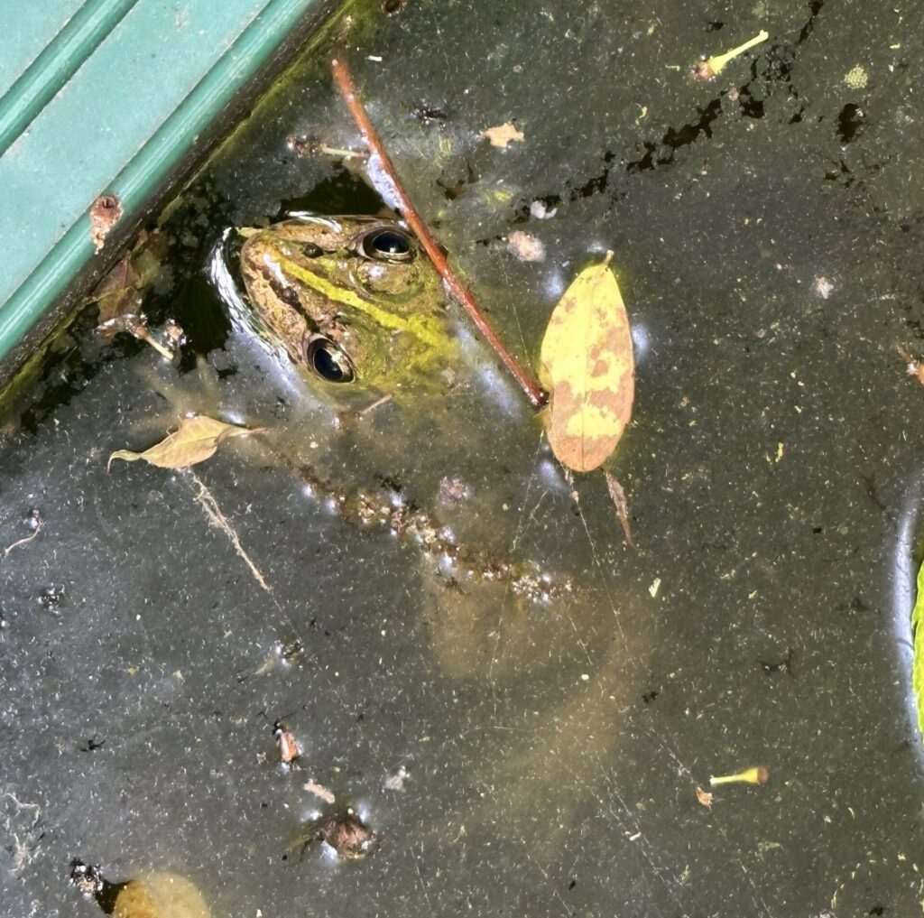 モリアオガエルの産卵池に居たトノサマガエル