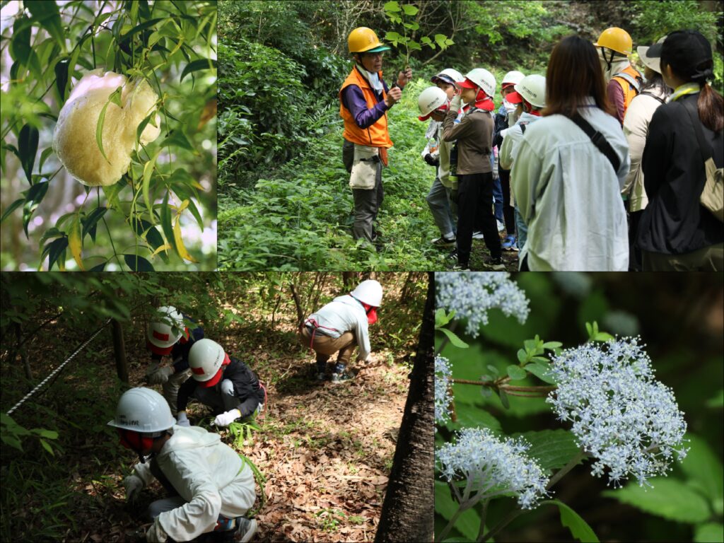 前日の晩に産み付けられたとみられるモリアオガエルの卵塊に驚いたり、開花し始めたコアジサイの香りにうっとりしたりと、未知のものに触れることのできた児童達の表情が印象的な学習会でした。