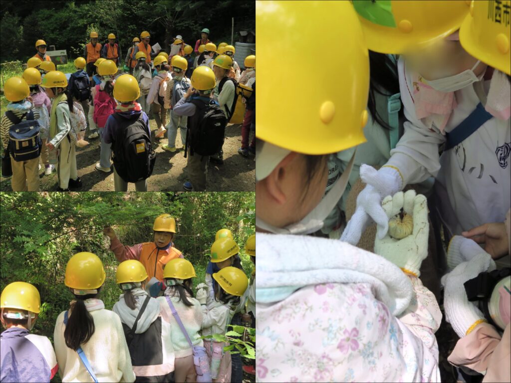 先週の清和台南小学校に続き、児童35名の参加で体験学習を実施。森や動植物についての座学、森での植物観察、ササ刈りなどを行いました。