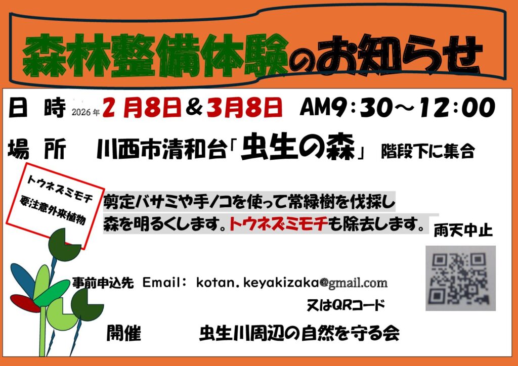 | 3/8 | ◎ | 森林整備体験 | 樹木伐採など | 無料 |