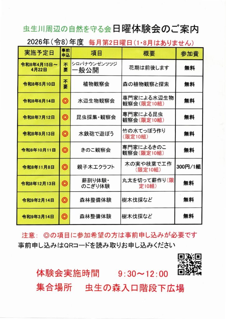 | 5/10 | 不要 | 植物観察会 | 森の植物観察と探索 | 無料 |